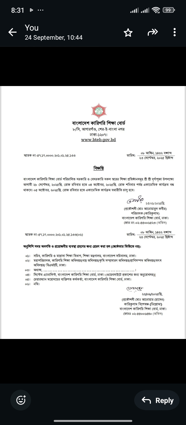 31-Aug-2025 নবম ফরম ফিলাপ 2025